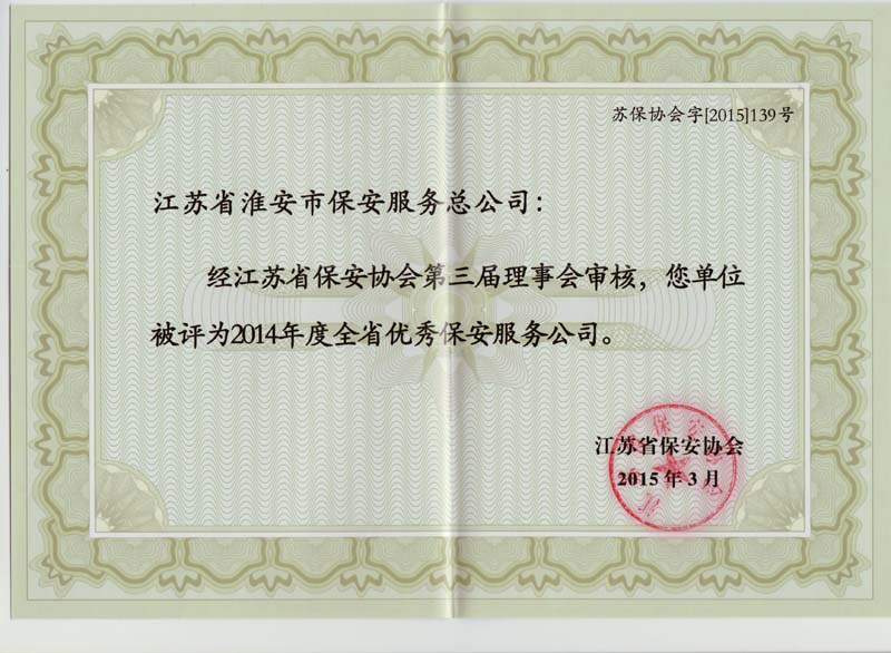 2014年度全省優(yōu)秀保安服務(wù)公司