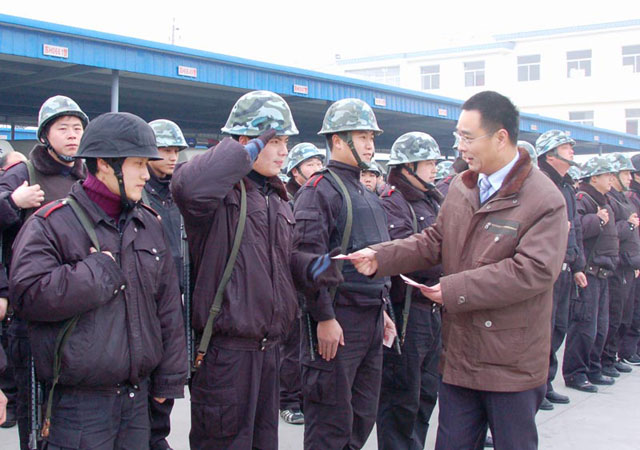 大年初一,公司總經(jīng)理婁伯翱、副總經(jīng)理王克、徐文剛等領導班子成員親切慰問了武裝押運員,向他們拜年并發(fā)放了紅包。當天上午,副總經(jīng)理王克、徐文剛分別驅(qū)車奔赴駐外各保安執(zhí)勤點慰問隊員,婁伯翱總經(jīng)理慰問了市區(qū)駐點隊員和物管公司等分支部門,向他們送去新年的祝福和問候。