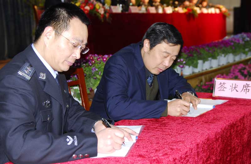 同時(shí)對(duì)2010年度工作進(jìn)行了部署,總經(jīng)理婁伯翱與押運(yùn)中心、保安管理部、駐外保安大隊(duì)等15個(gè)部門簽署了2010年度工作目標(biāo)責(zé)任狀。