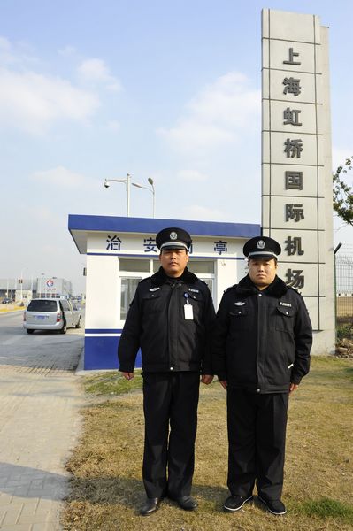 駐上海保安副大隊(duì)長(zhǎng)安武生告訴筆者,早在2003年,江蘇淮安保安就開(kāi)展了跨區(qū)域服務(wù)。2009年把目光瞄向了大上海,起初是服務(wù)高檔小區(qū),接著是合資單位,駐外保安員優(yōu)質(zhì)的服務(wù)和良好的形象受到了用人單位的好評(píng)。2010年2月,上海東方航空物管公司與江蘇淮安保安簽訂協(xié)議,協(xié)議決定將上海虹橋國(guó)際機(jī)場(chǎng)航站樓的安保工作交給淮安保安負(fù)責(zé)。用專(zhuān)業(yè)的保安隊(duì)來(lái)為航站樓物業(yè)安全提供保障?;窗脖0仓凳卦跈C(jī)場(chǎng)第二、第三航站樓各個(gè)崗位,擔(dān)負(fù)起虹橋機(jī)場(chǎng)航站樓防盜管理、門(mén)禁系統(tǒng)監(jiān)控、樓內(nèi)秩序維護(hù)、突發(fā)事件處置等各項(xiàng)職能。
