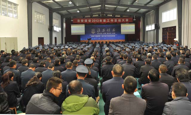 會(huì)議內(nèi)容和安排一切從簡(jiǎn),有四項(xiàng)議程,一是播放年度總結(jié)PPT文件,二是宣讀表彰人員名單,三是部門遞交責(zé)任狀,最后總經(jīng)理婁伯翱講話。押運(yùn)大隊(duì)市區(qū)押運(yùn)員和駐各縣隊(duì)員代表;機(jī)關(guān)各部門人員以及各分公司員工代表近700人參加了會(huì)議。